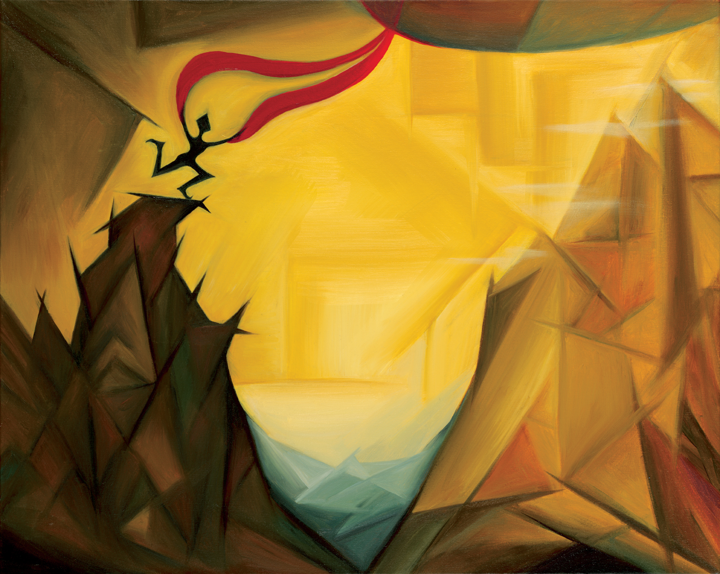 This painting is among The Artist’s Way “Things I’m Not Supposed To Do” mini-series of paintings, as mentioned in my first post. One of the things I addressed is my fear to take figurative leap of faith in a step of personal growth.